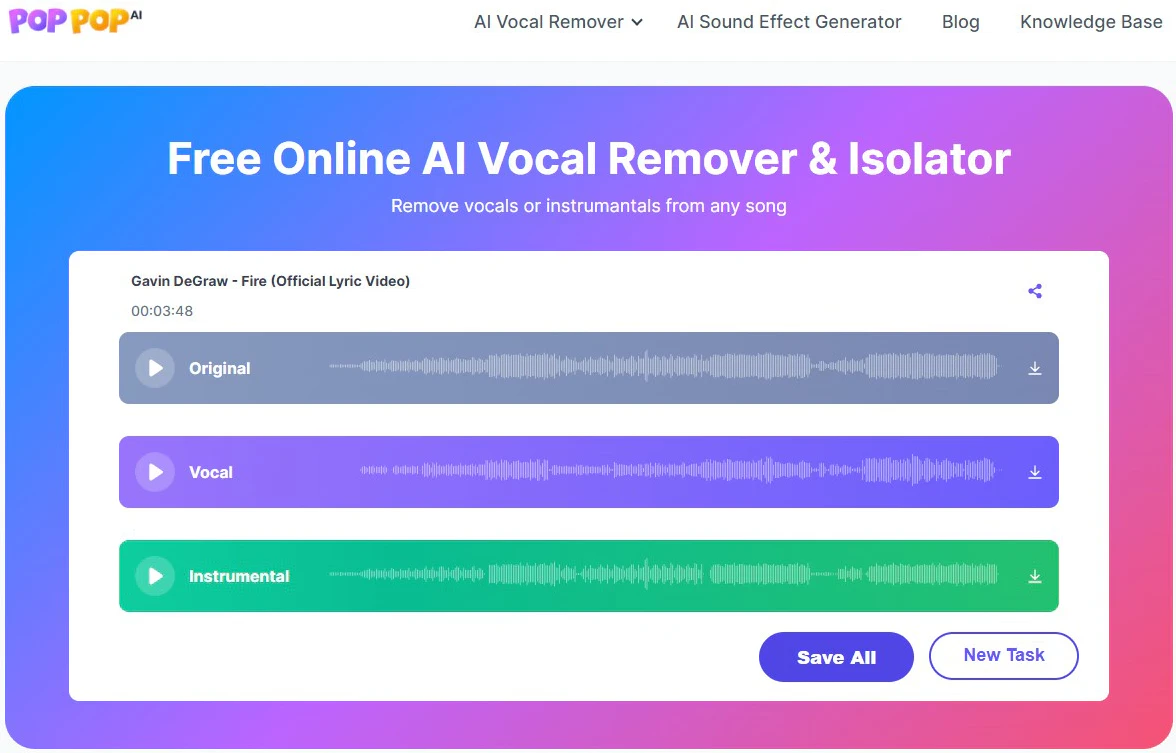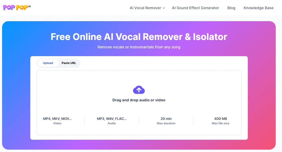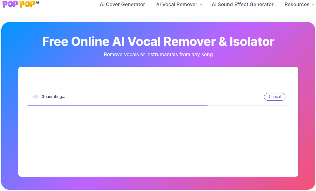 PopPop AI人声分离器是一款免费的在线工具,能够将音乐中的歌声与伴奏分离。它能够单独提取人声和乐器音轨,并支持以MP3格式下载。非常适合用于制作卡拉OK伴奏、混音或背景音乐,提供工作室级别的分离效果。