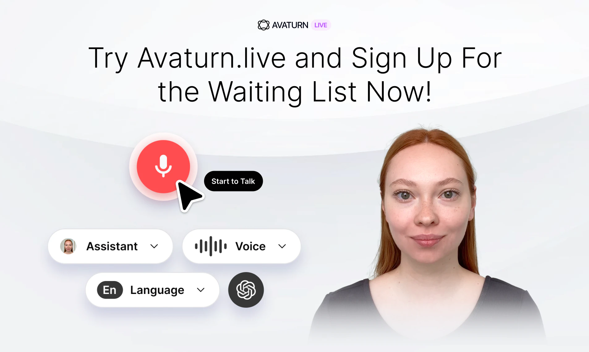 遇见Avaturn.live,一个可以实时对话的AI助手。体验与能够处理客户咨询或销售演示的虚拟形象进行无缝语音交流。尝试我们的人工智能虚拟形象演示,并立即加入等候名单!