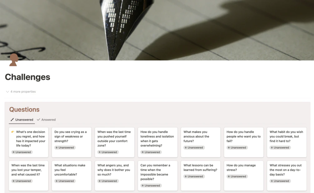 🧠 再也不会在反思生活时遇到写作障碍。📊 通过深刻的图表和量表,时刻掌握你的情绪、情感和心理健康。📈 通过详细的图表跟踪你在365个问题中的进展。