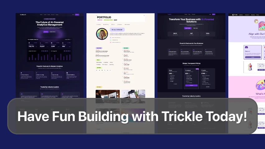 Trickle 是一款一站式工具,赋予每个人构建、发布和管理强大、美观的 AI 代理、网络应用和表单的能力。凭借内置的数据库、AI 模型、分析和设计,Trickle 将想法从概念转化为即用型应用。