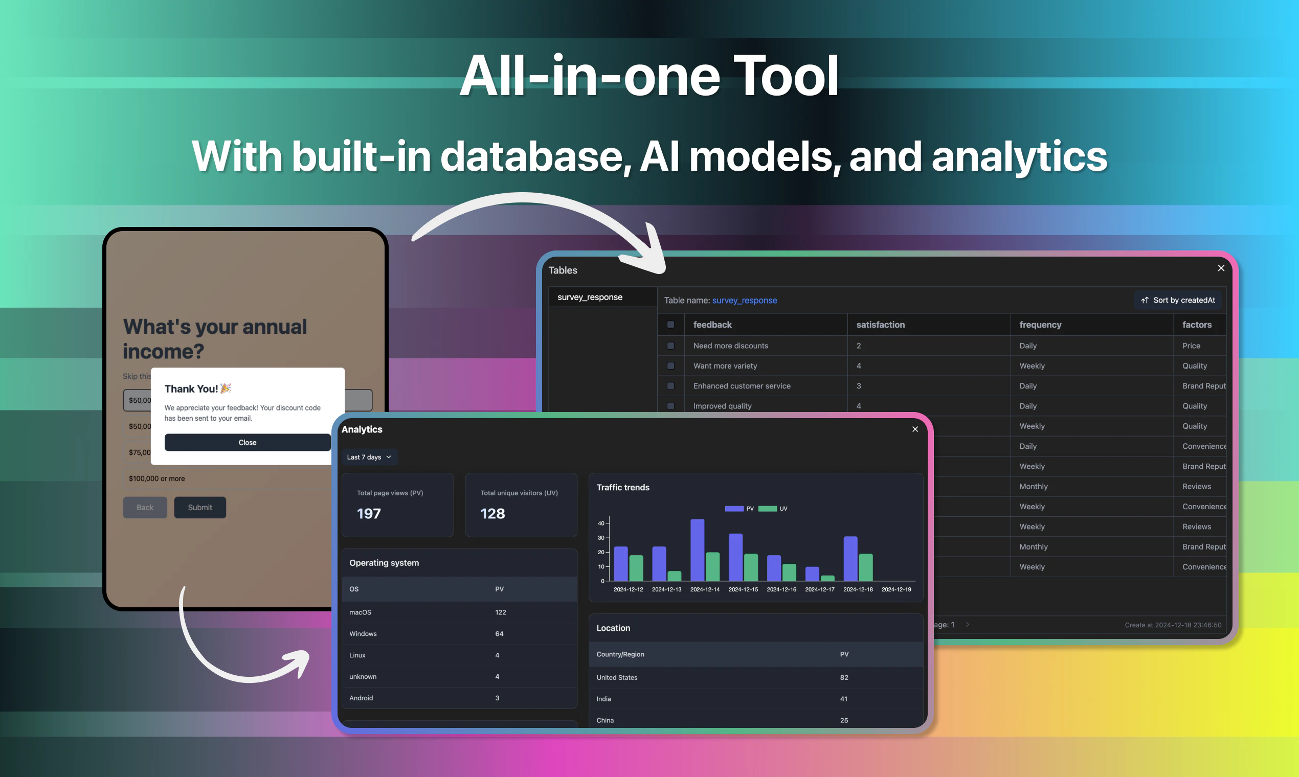 轻松构建令人惊叹的AI应用程序、网站和表单。