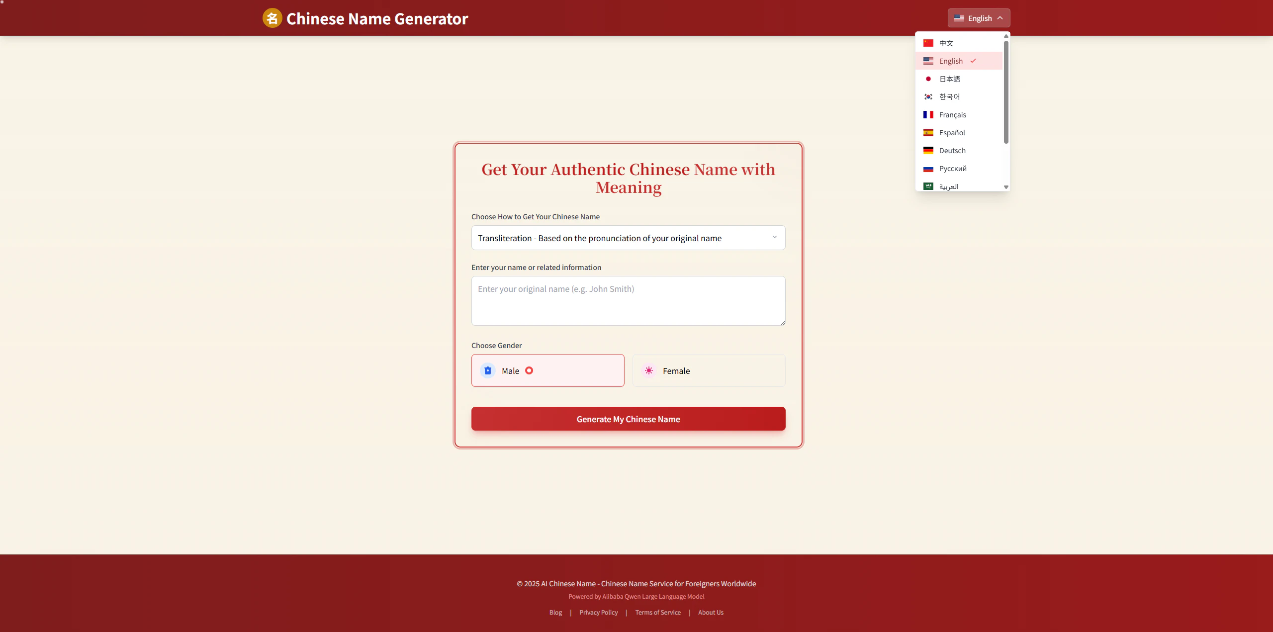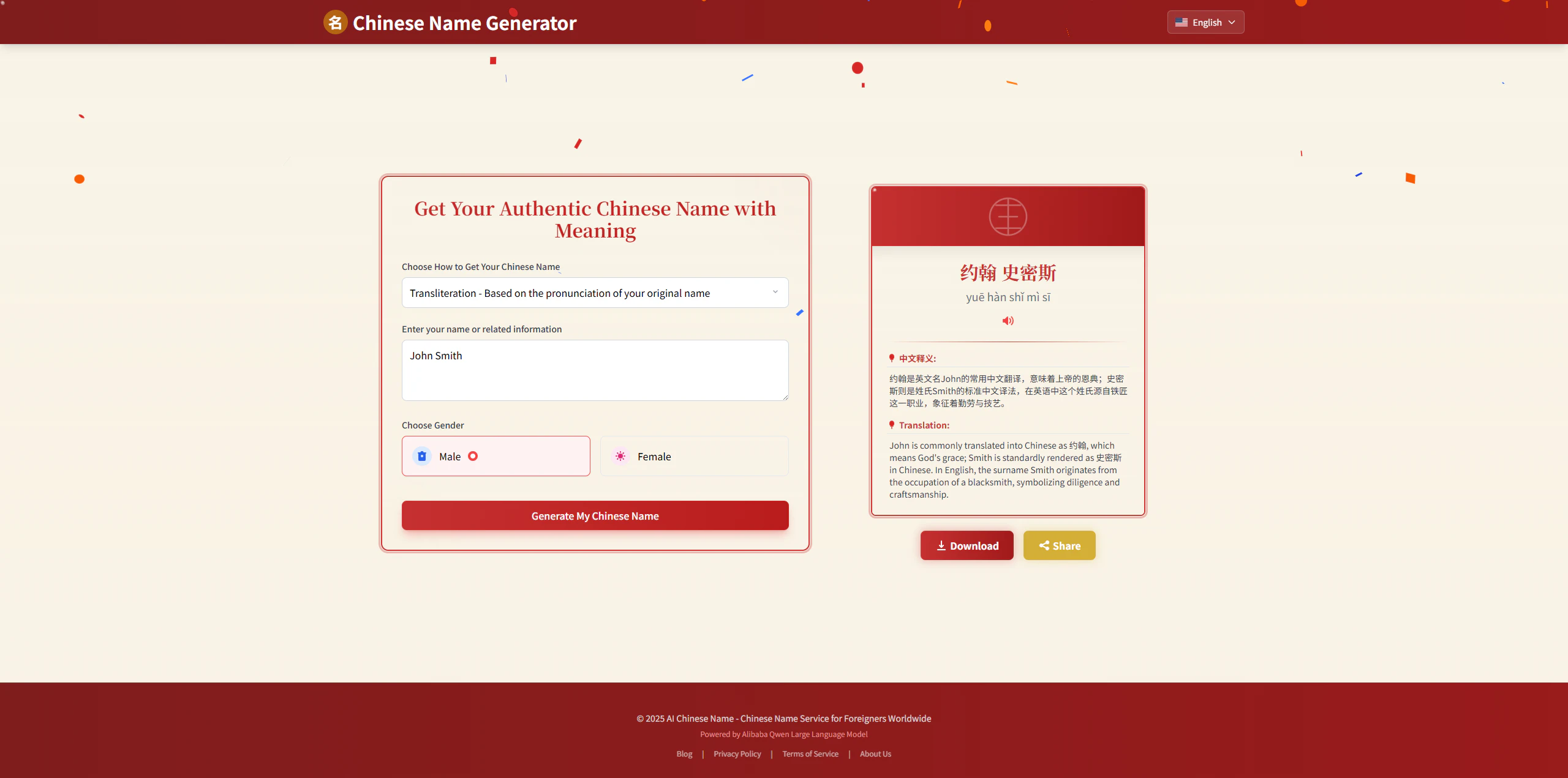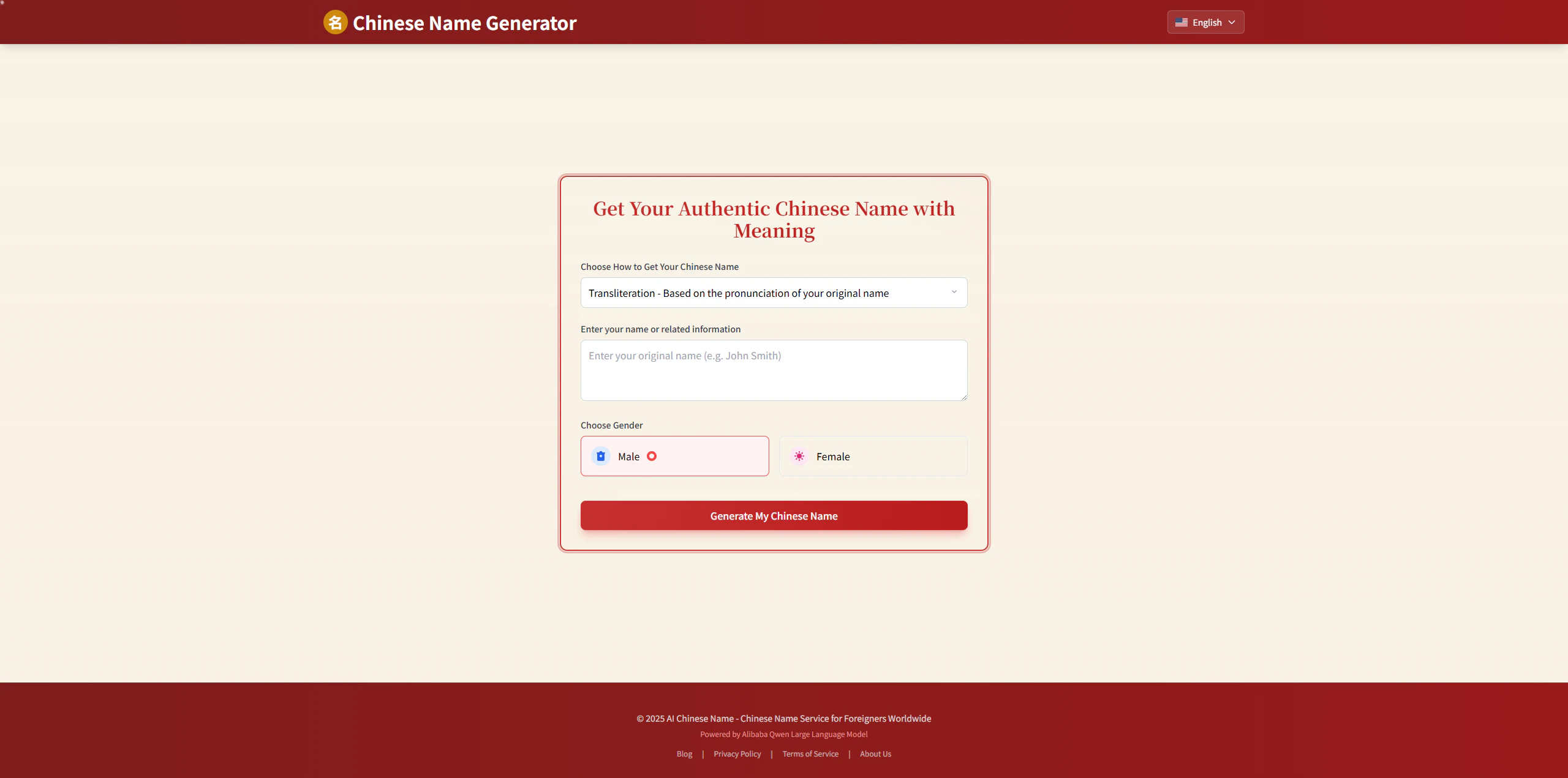 只需几秒,即可生成地道中文名!基于5000+历史人名与文化专家训练的AI智能生成。特别适合语言学习者、海外侨胞及所有对中国文化感兴趣的人士。每个名字均附发音指南及寓意解析。
