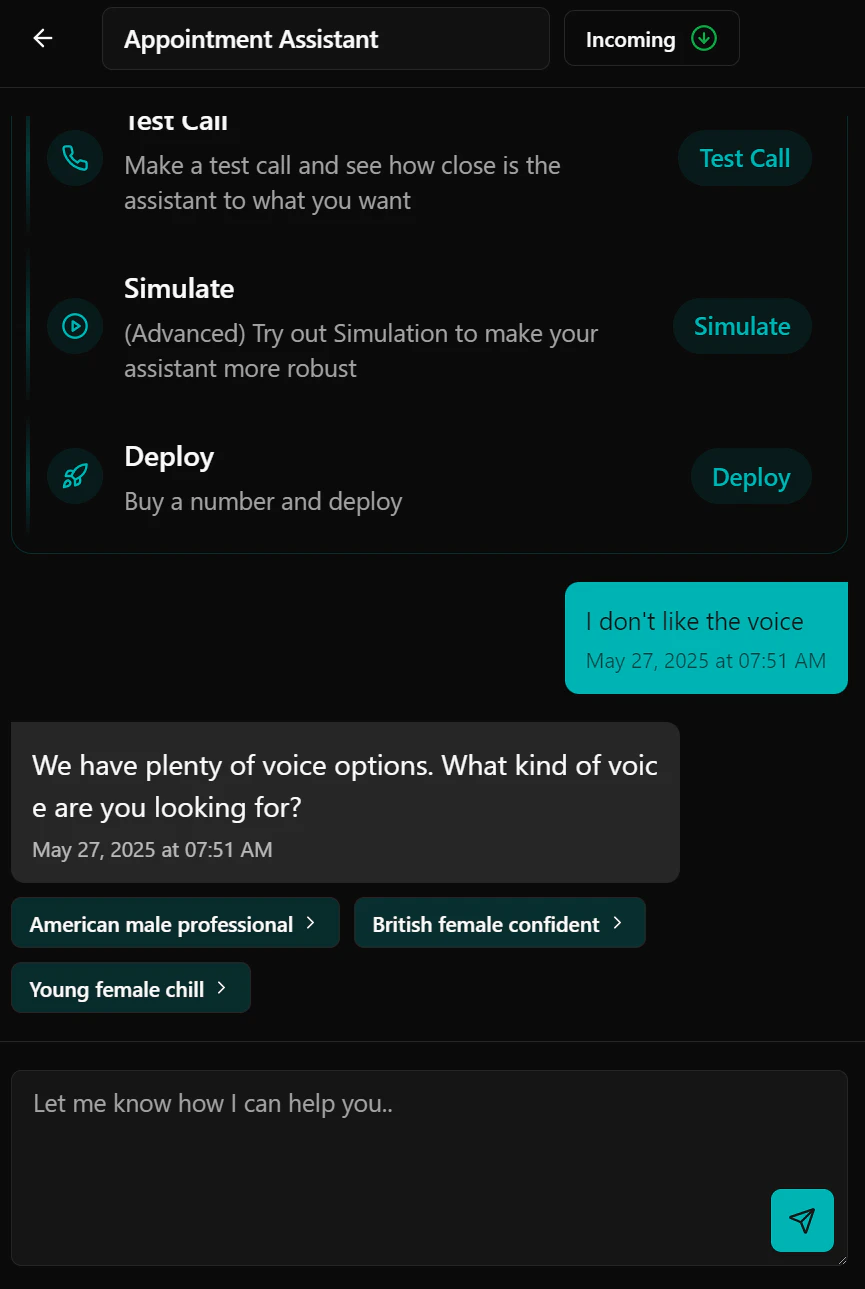 Prompt2Voice lets you build and ship reliable voice AI agents just by prompting. Simulate 1000s of edge cases, monitor with built-in observability, and integrate with external systems like calendars and CRMs. APIs and SDKs are available for developers.
